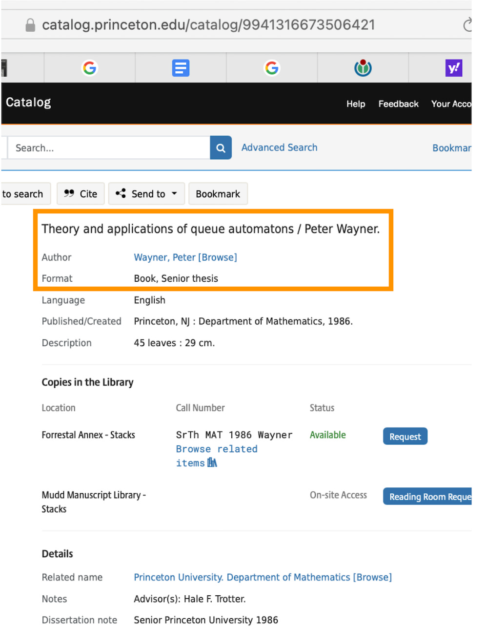 1a. https://catalog.princeton.edu/catalog?q=Peter%20wayner&search_field=all_fields