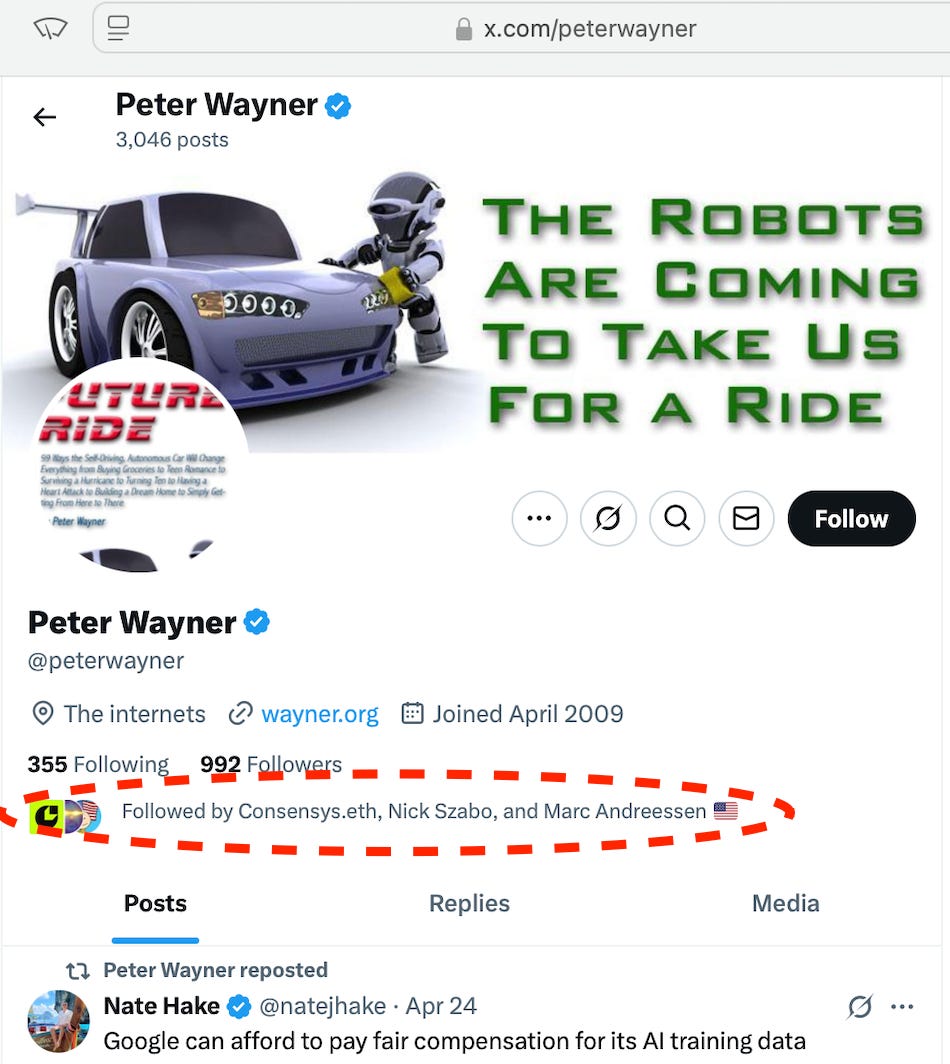 Nick Szabo, Marc Andreessen, and Consensus.eth Follow Peter on X. [5]